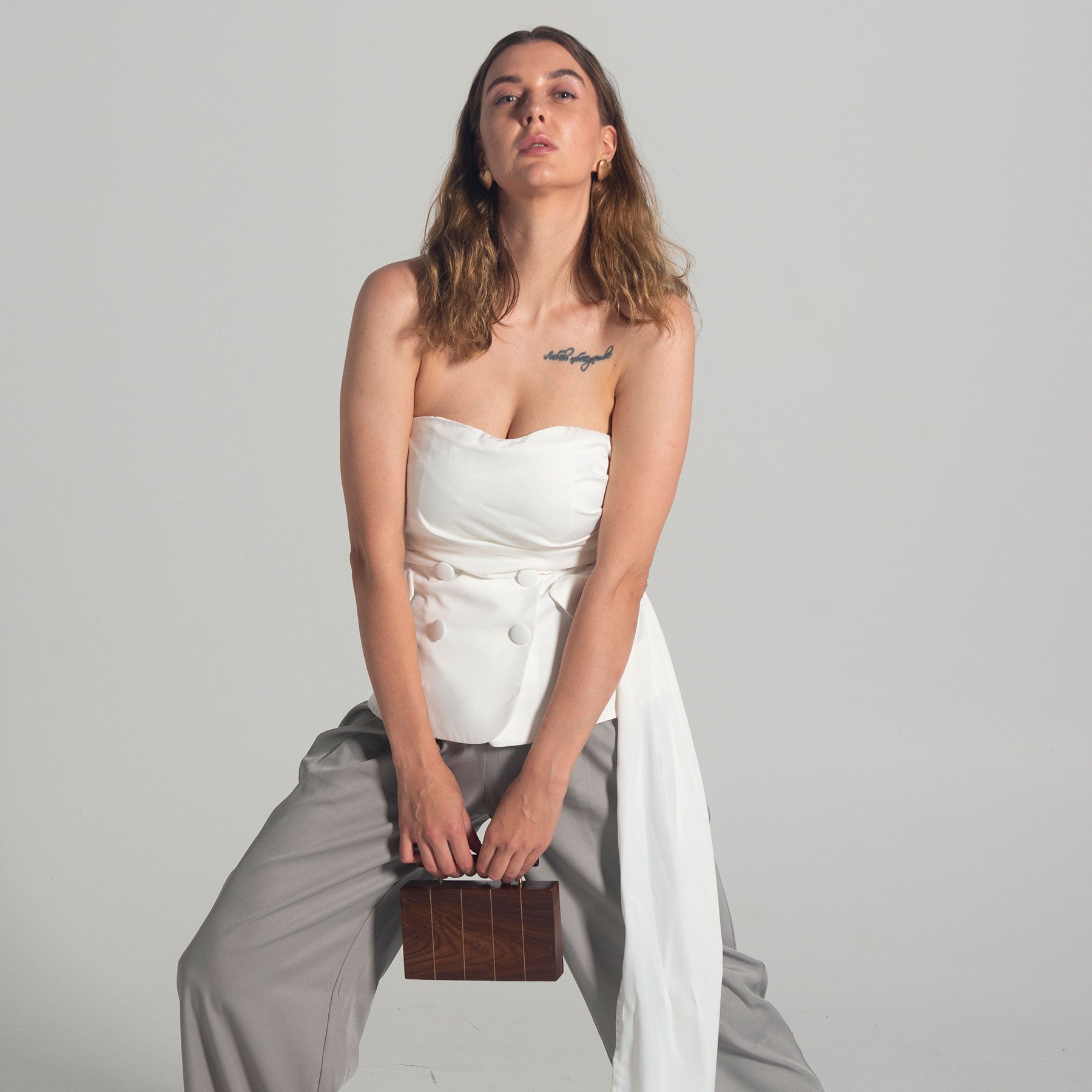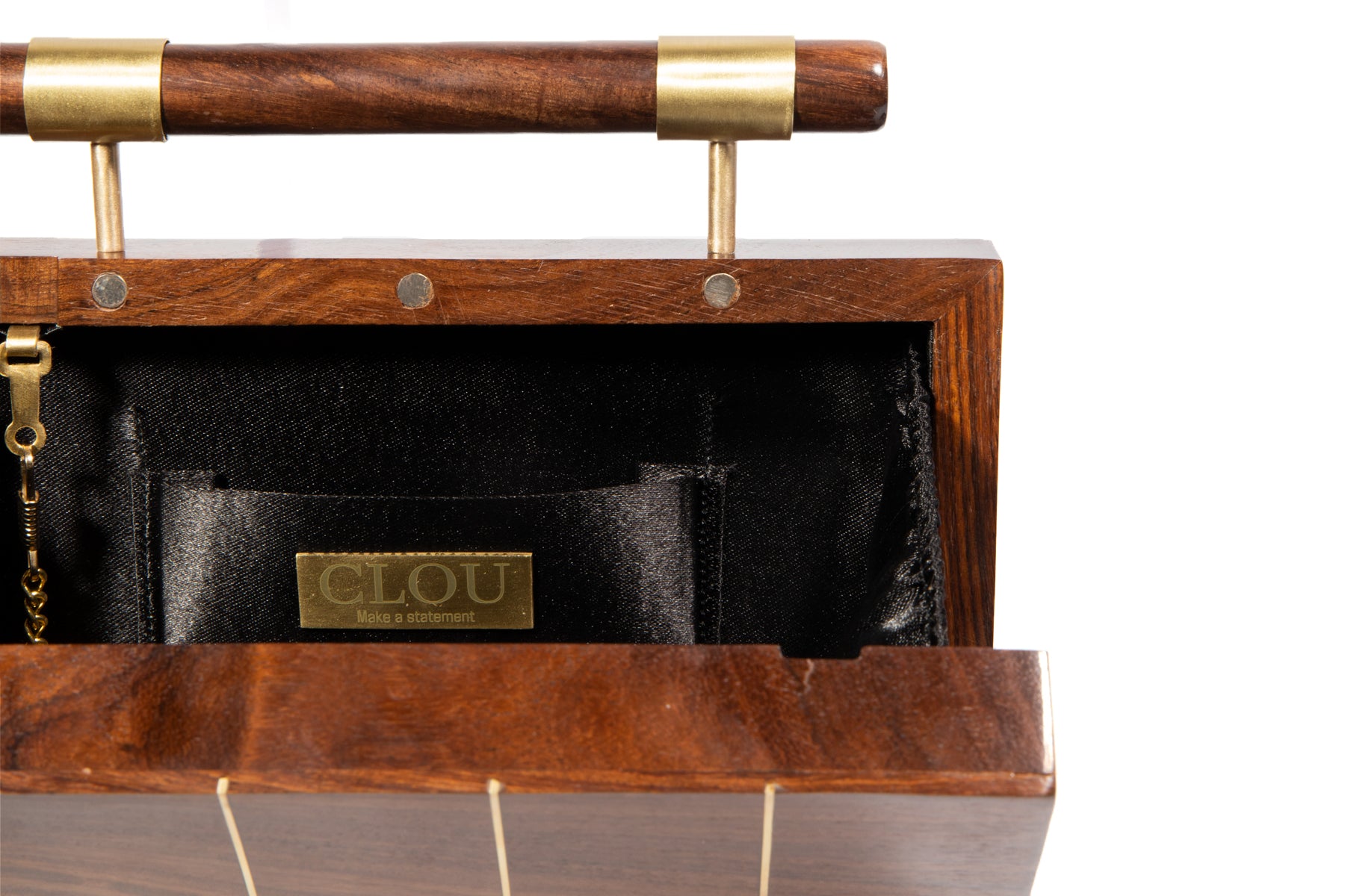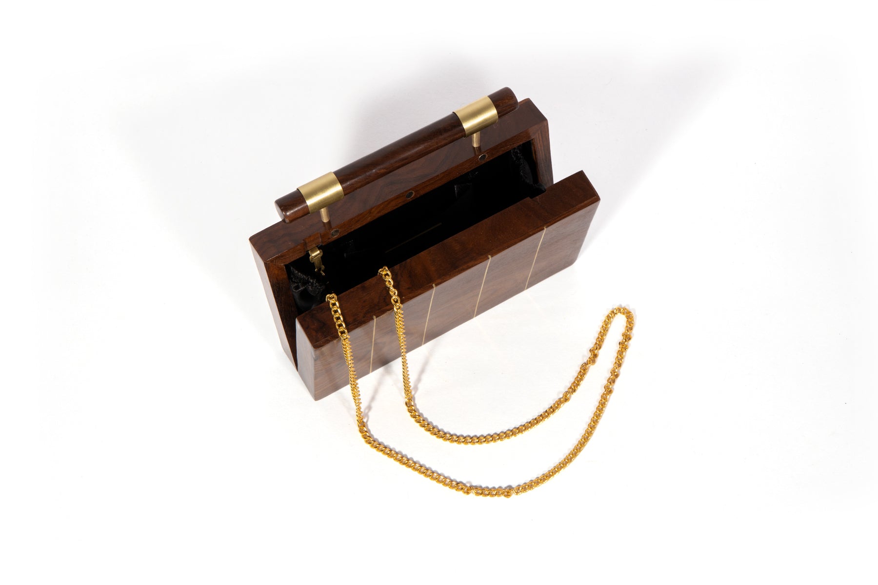 This rectangular brown wooden clutch bag is a masterful fusion of style and sophistication. Its earthy charm perfectly complements your favorite summer dress, and its versatility shines when paired with bold printed or crisp white outfits. Adding a touch of natural elegance to any look, this bag is the perfect accessory for warm-weather wardrobes and beyond.