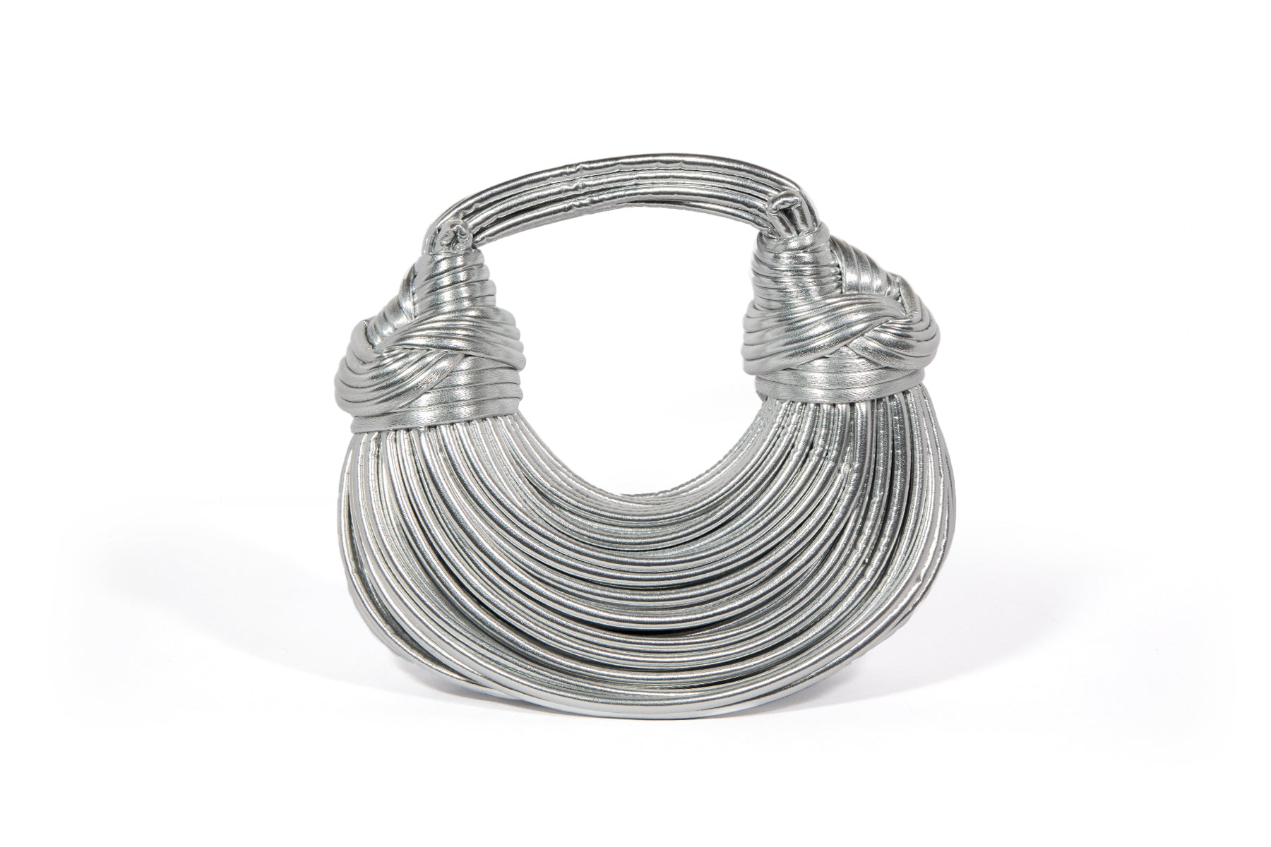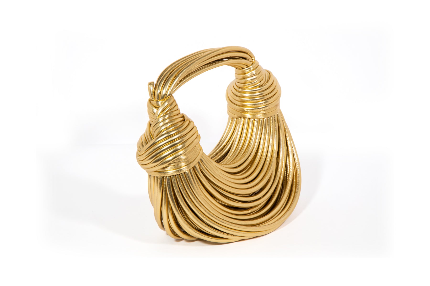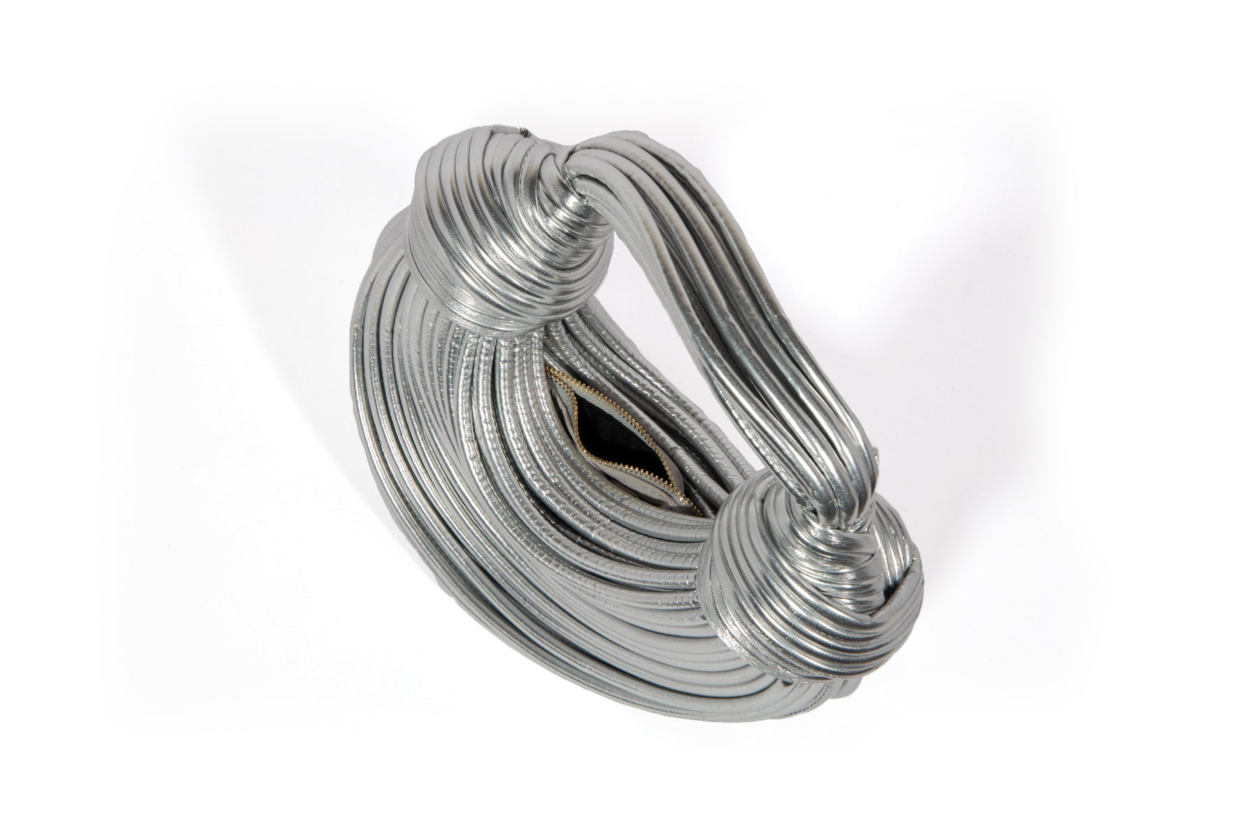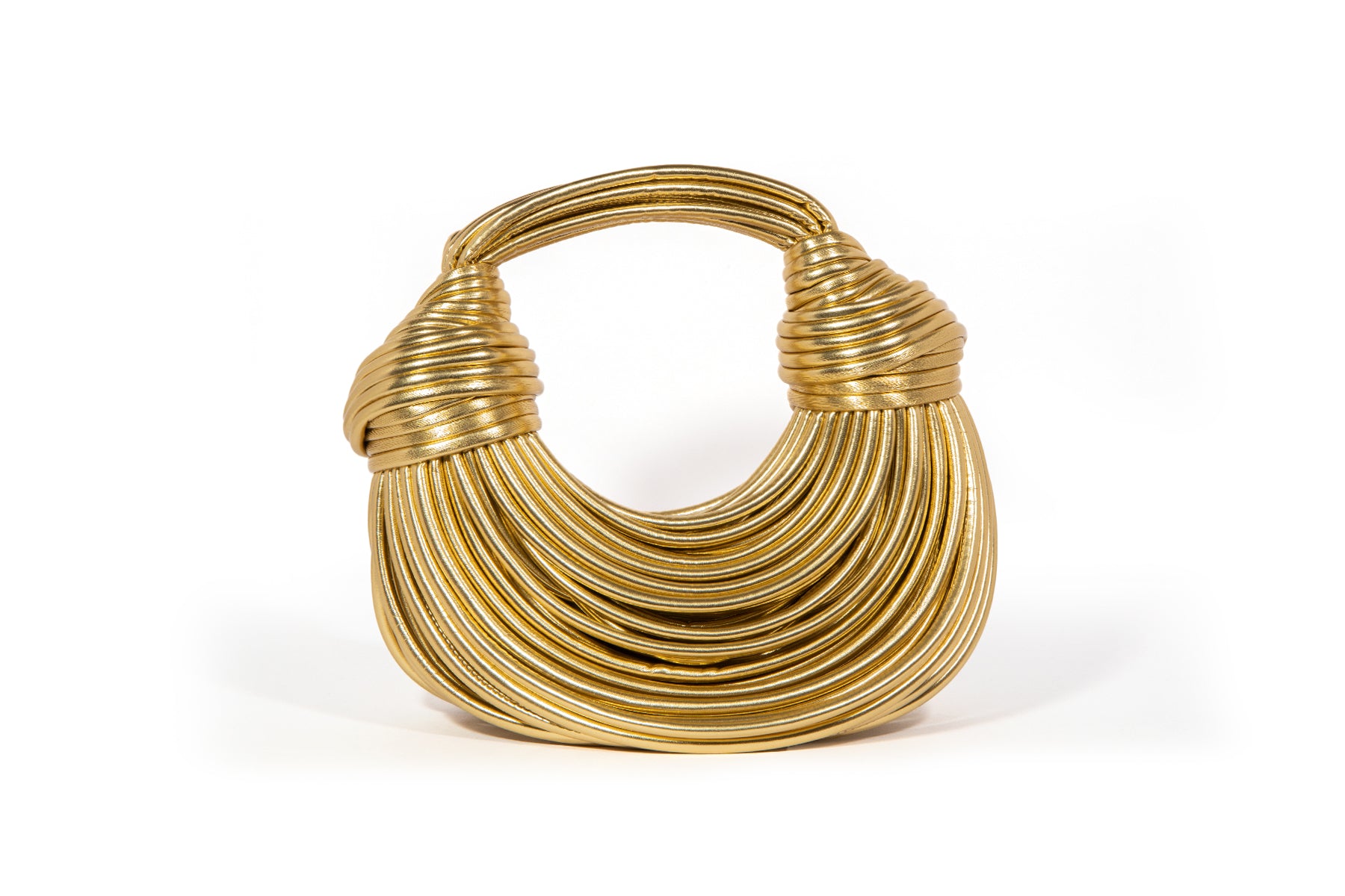 Experience the perfect fusion of sophistication and durability with this exquisite handbag, expertly crafted from premium vegan and cruelty-free leather. More than just a practical accessory, it's a bold fashion statement that exudes luxury and style. The designer's touch is evident in the intricate knotted detailing, setting this piece apart as the ultimate choice for the modern woman. Elevate your look for date night or everyday sophistication with this stunning handbag, available in sleek silver and golden hues. Its seamless blend of high-quality materials and chic design makes it the perfect companion for any occasion.
