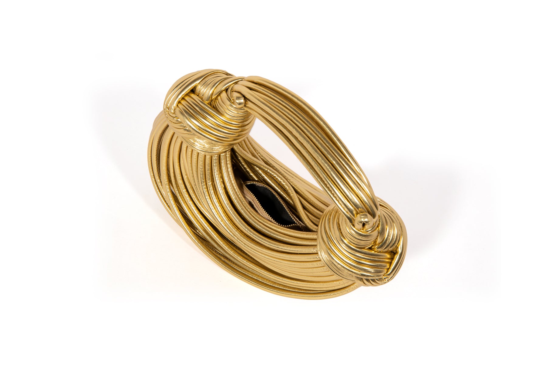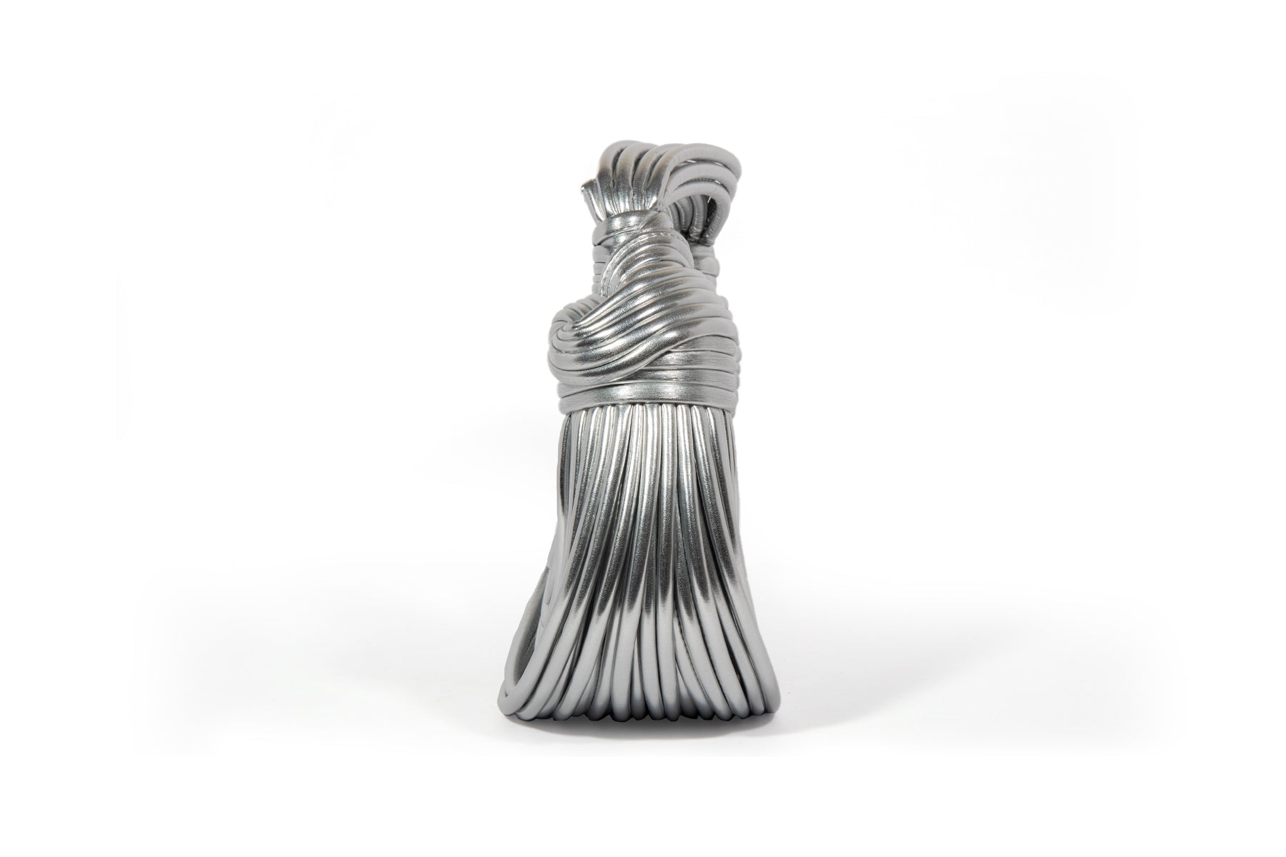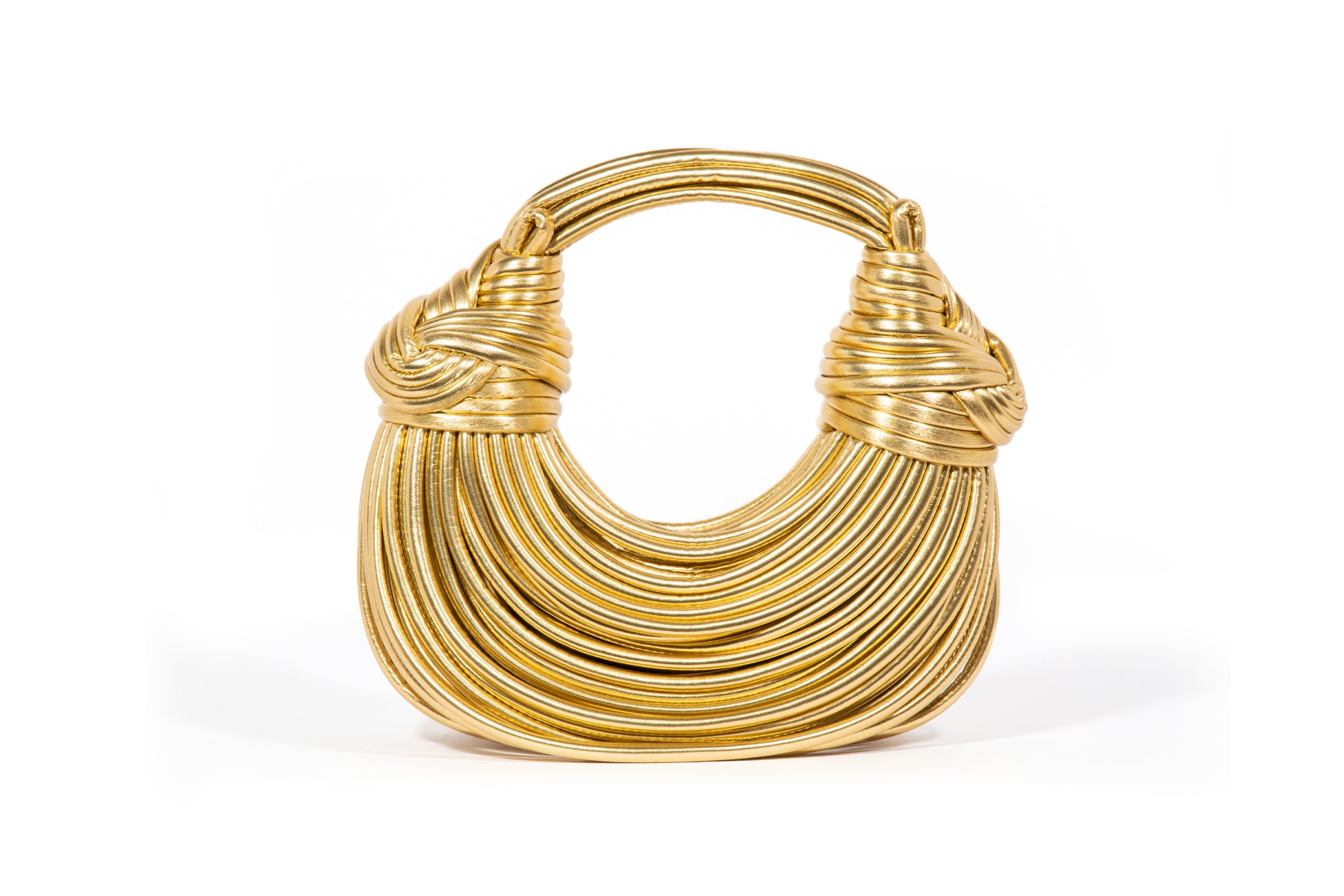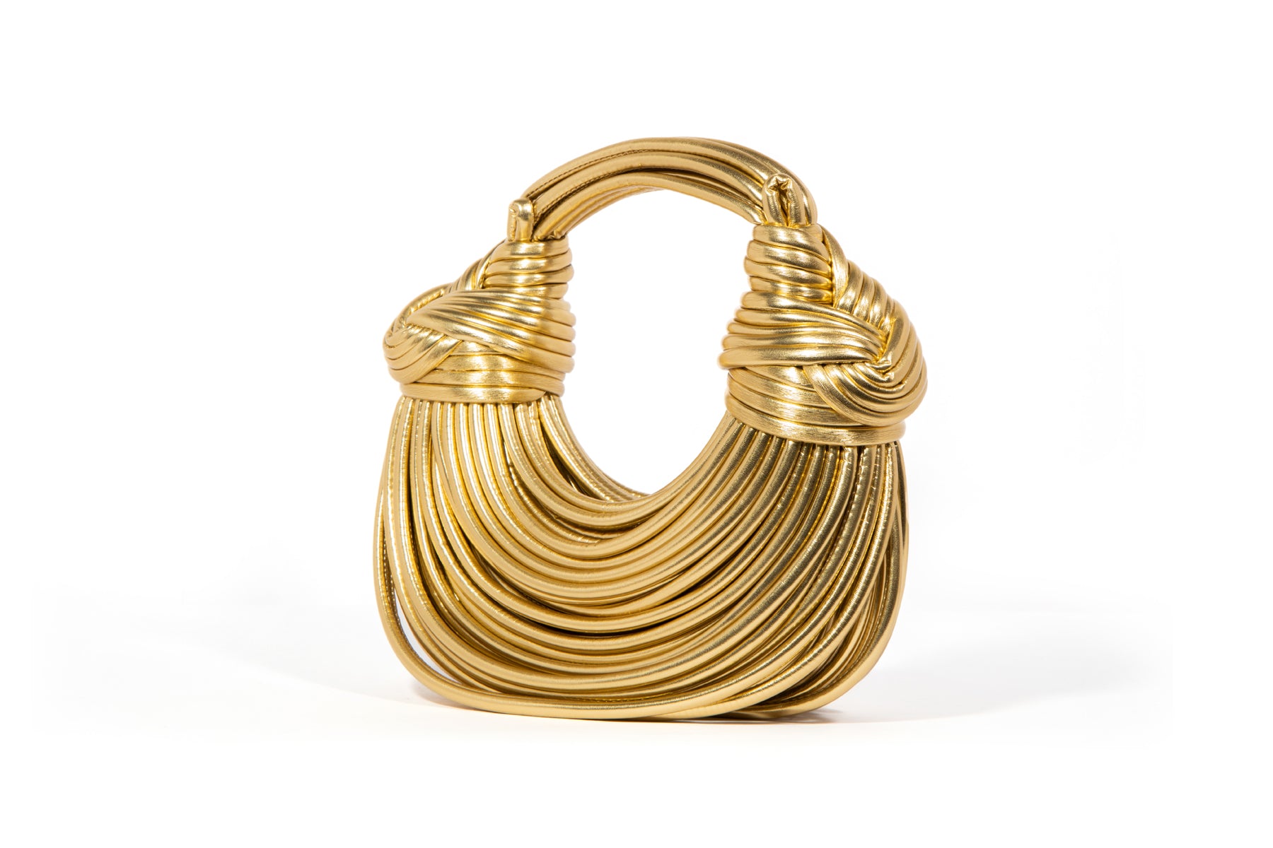 Experience the perfect fusion of sophistication and durability with this exquisite handbag, expertly crafted from premium vegan and cruelty-free leather. More than just a practical accessory, it's a bold fashion statement that exudes luxury and style. The designer's touch is evident in the intricate knotted detailing, setting this piece apart as the ultimate choice for the modern woman. Elevate your look for date night or everyday sophistication with this stunning handbag, available in sleek silver and golden hues. Its seamless blend of high-quality materials and chic design makes it the perfect companion for any occasion.