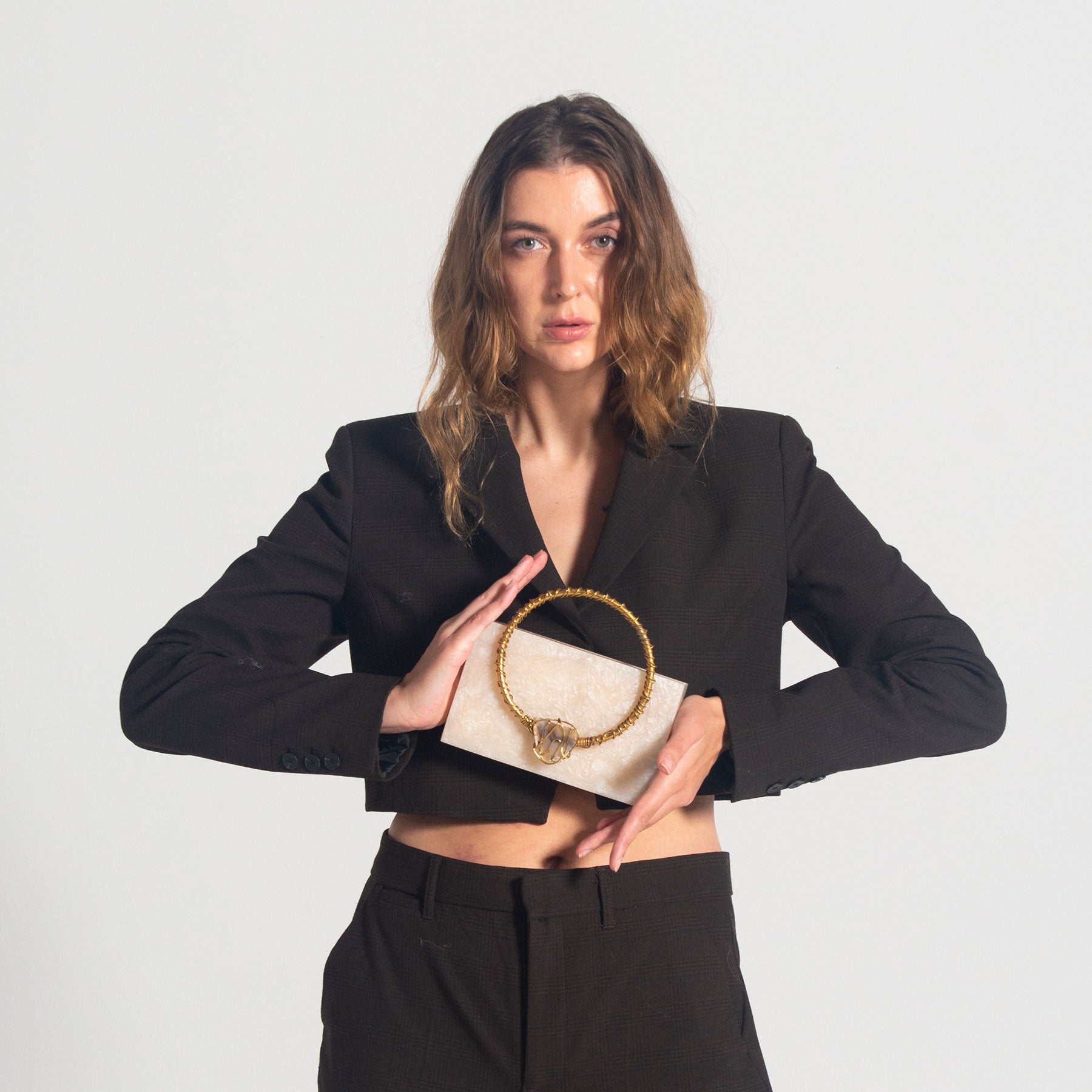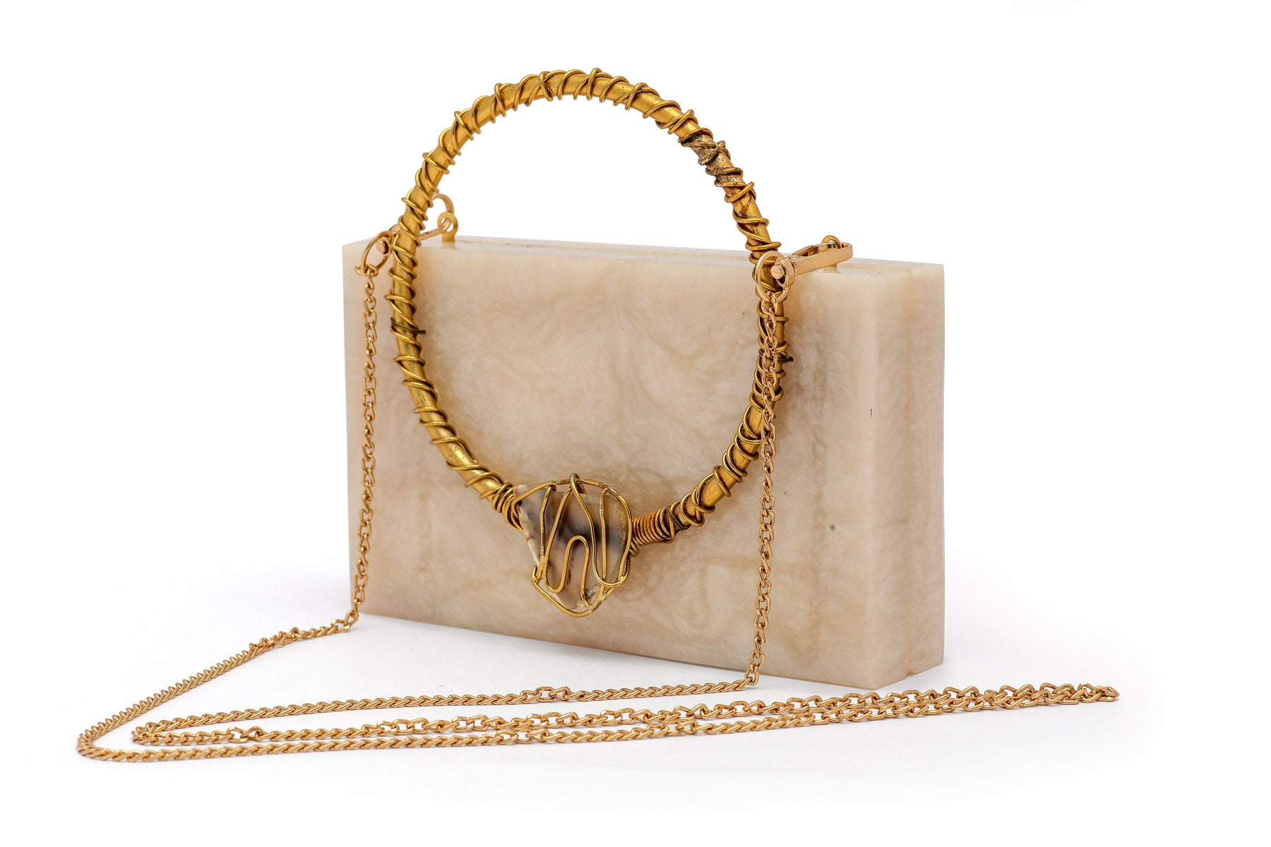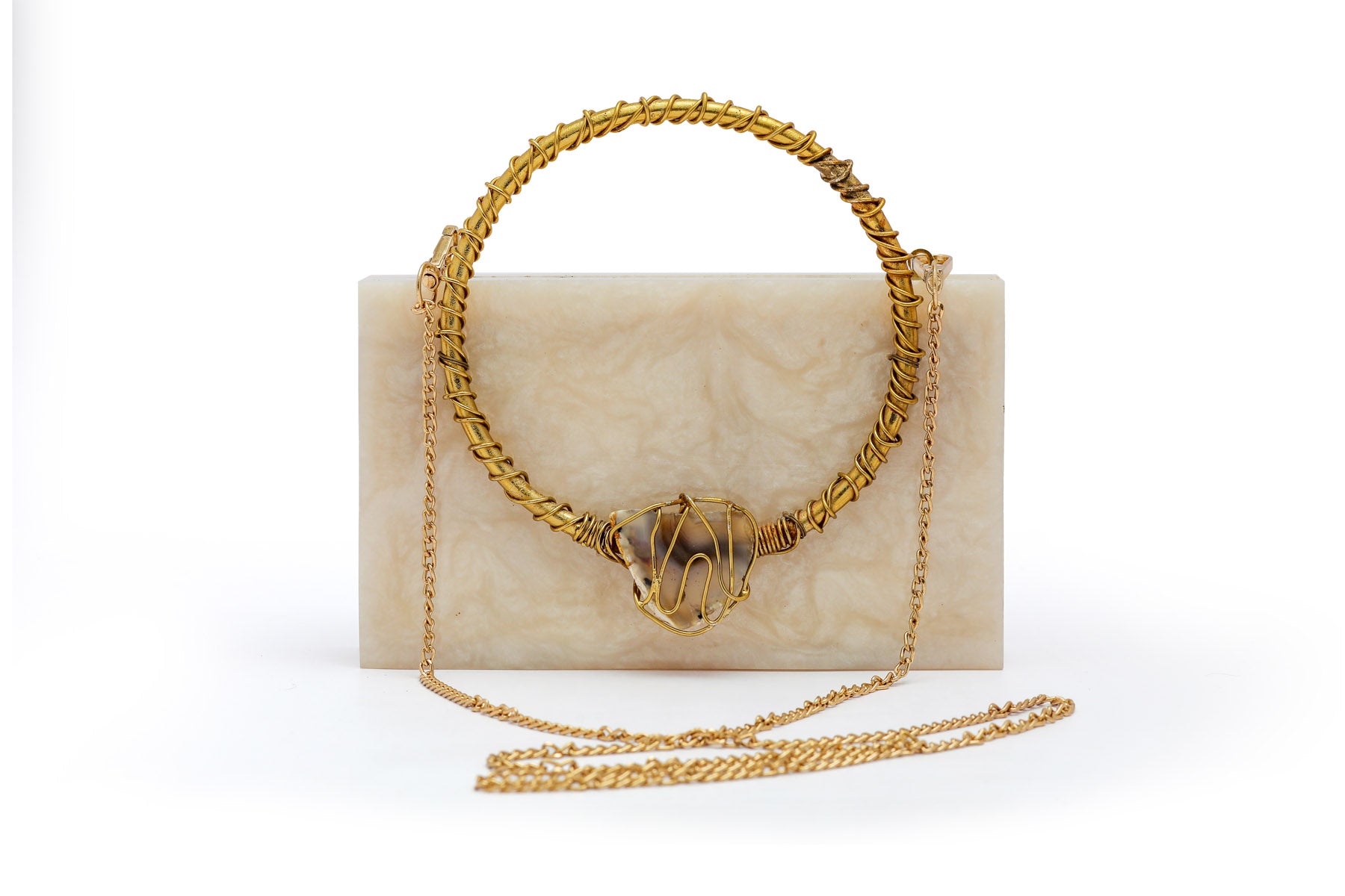 Exuding luxury and sophistication, this exquisite handcrafted bag showcases exceptional craftsmanship and attention to detail. Made from high-quality resin and adorned with stunning quartz stones, each piece is truly one-of-a-kind. The inclusion of a chain adds a touch of versatility, allowing the bag to be styled in multiple ways. Please note that the handmade nature of this product may result in slight variations in color, weaving pattern, and stone shape, only adding to its unique charm. Perfect for elevating everyday looks or making a statement at special occasions, this elegant bag is a must-have accessory for discerning individuals who appreciate exceptional quality and style.