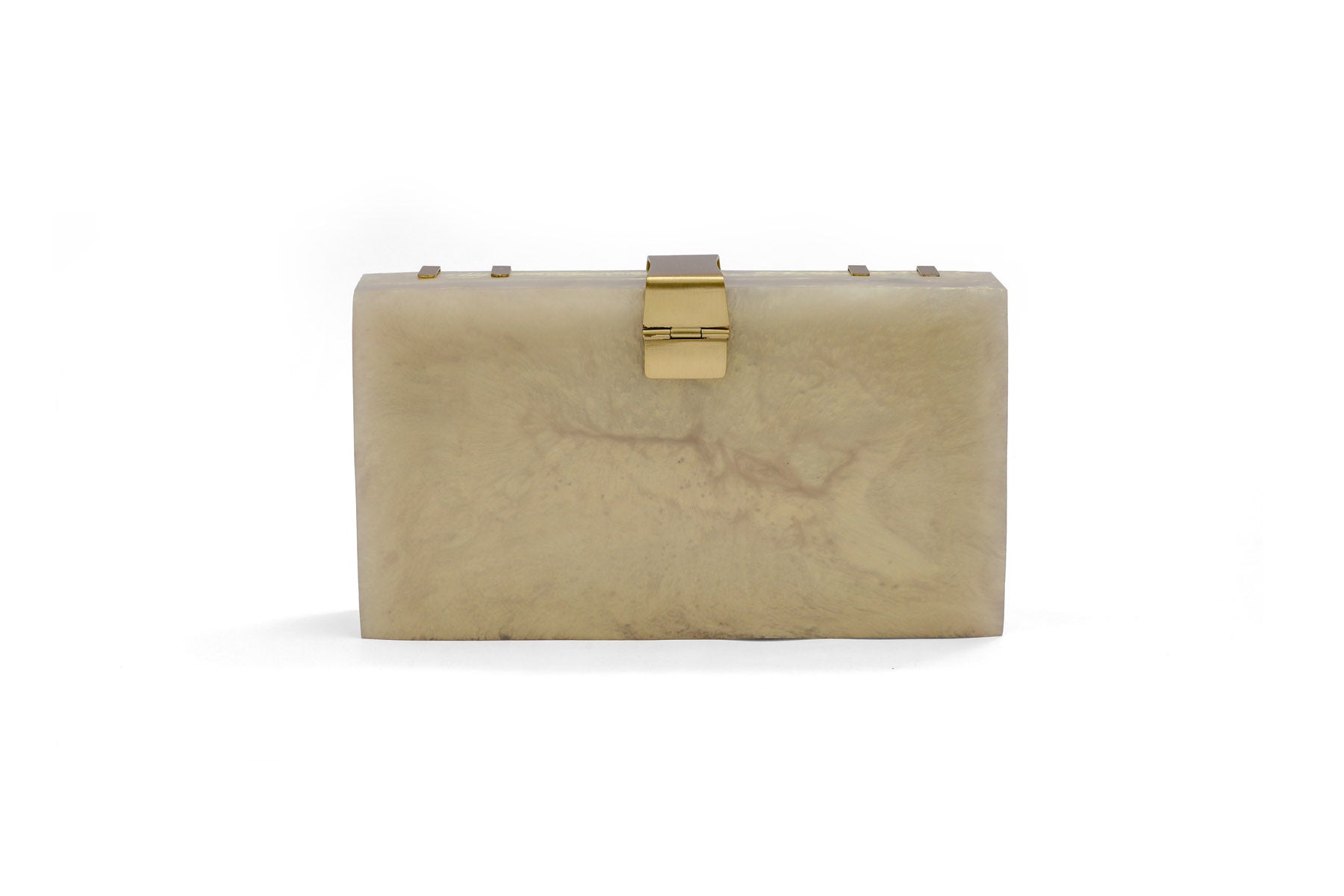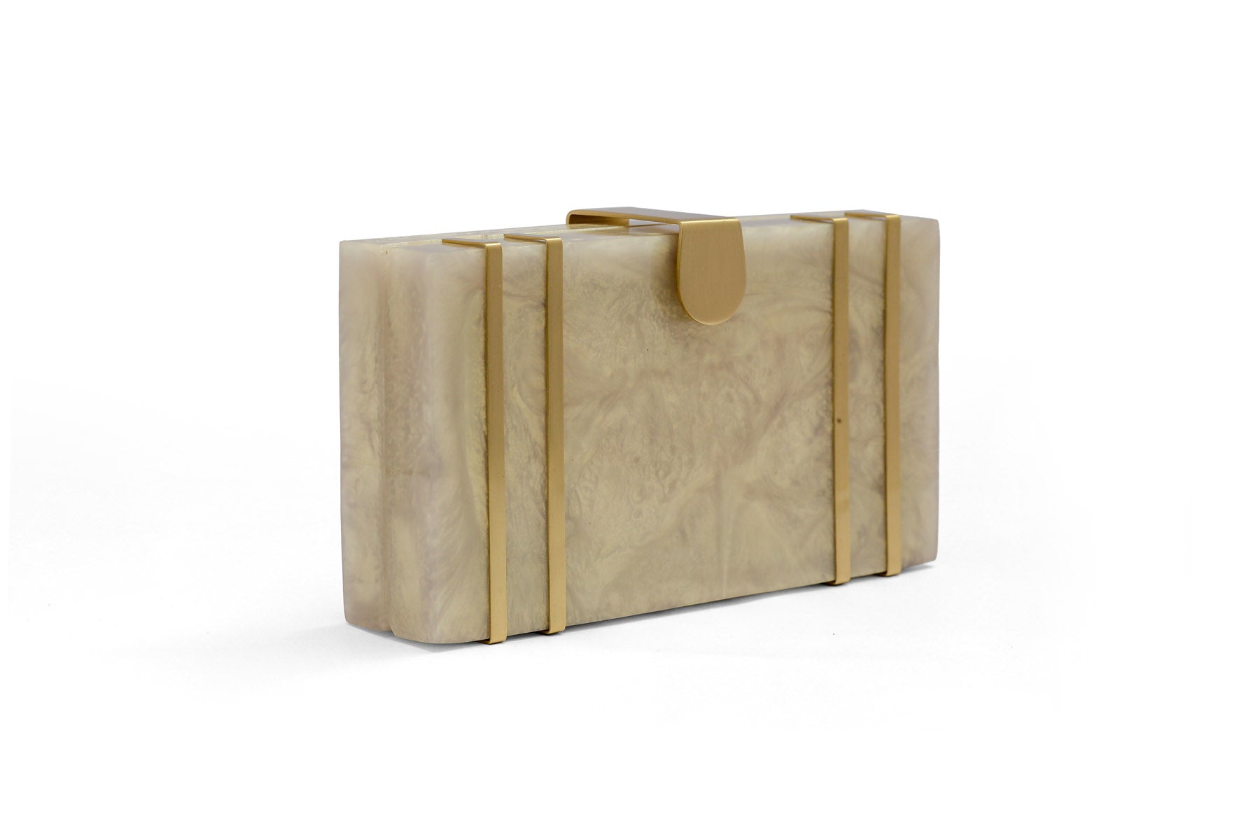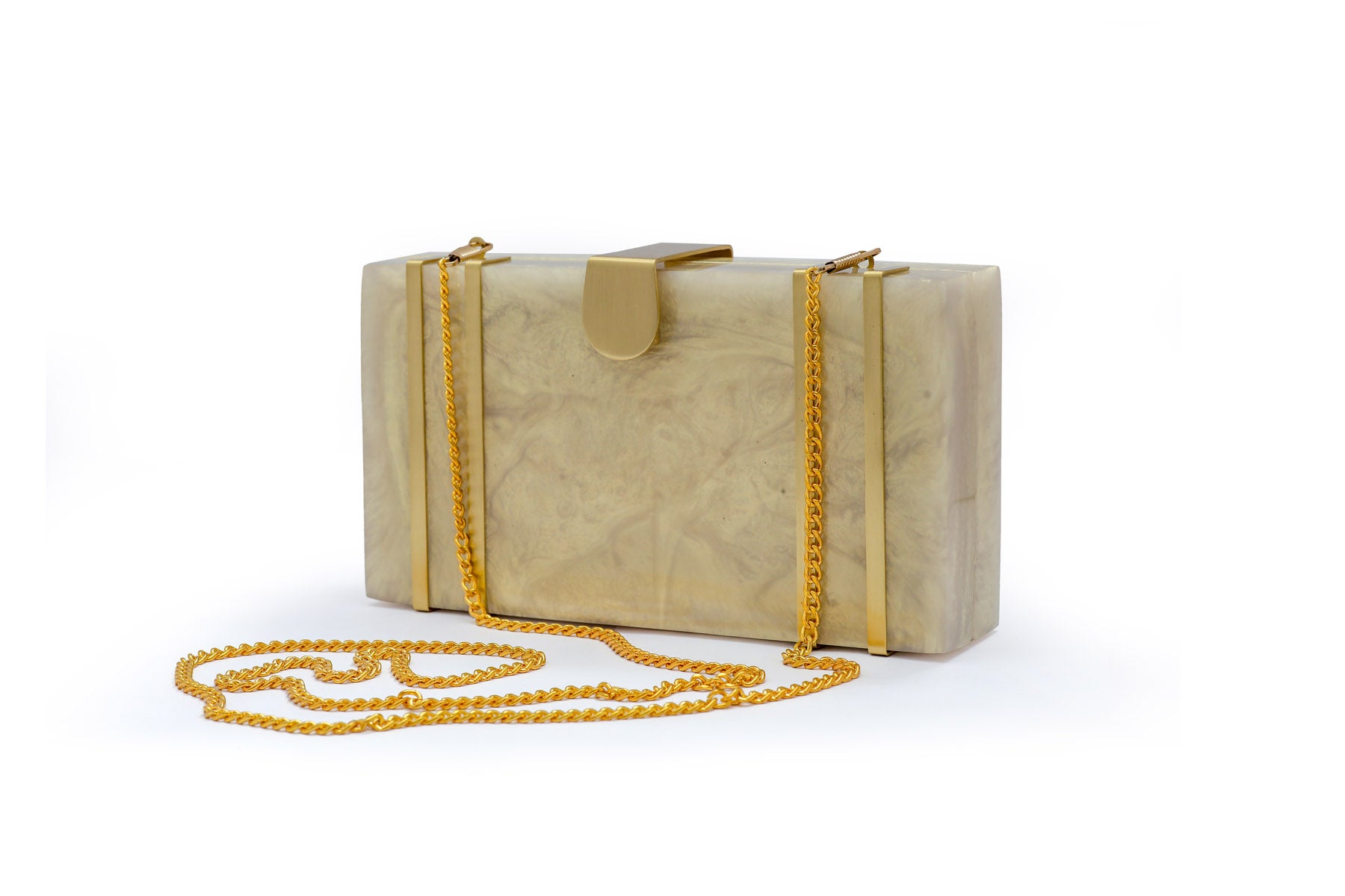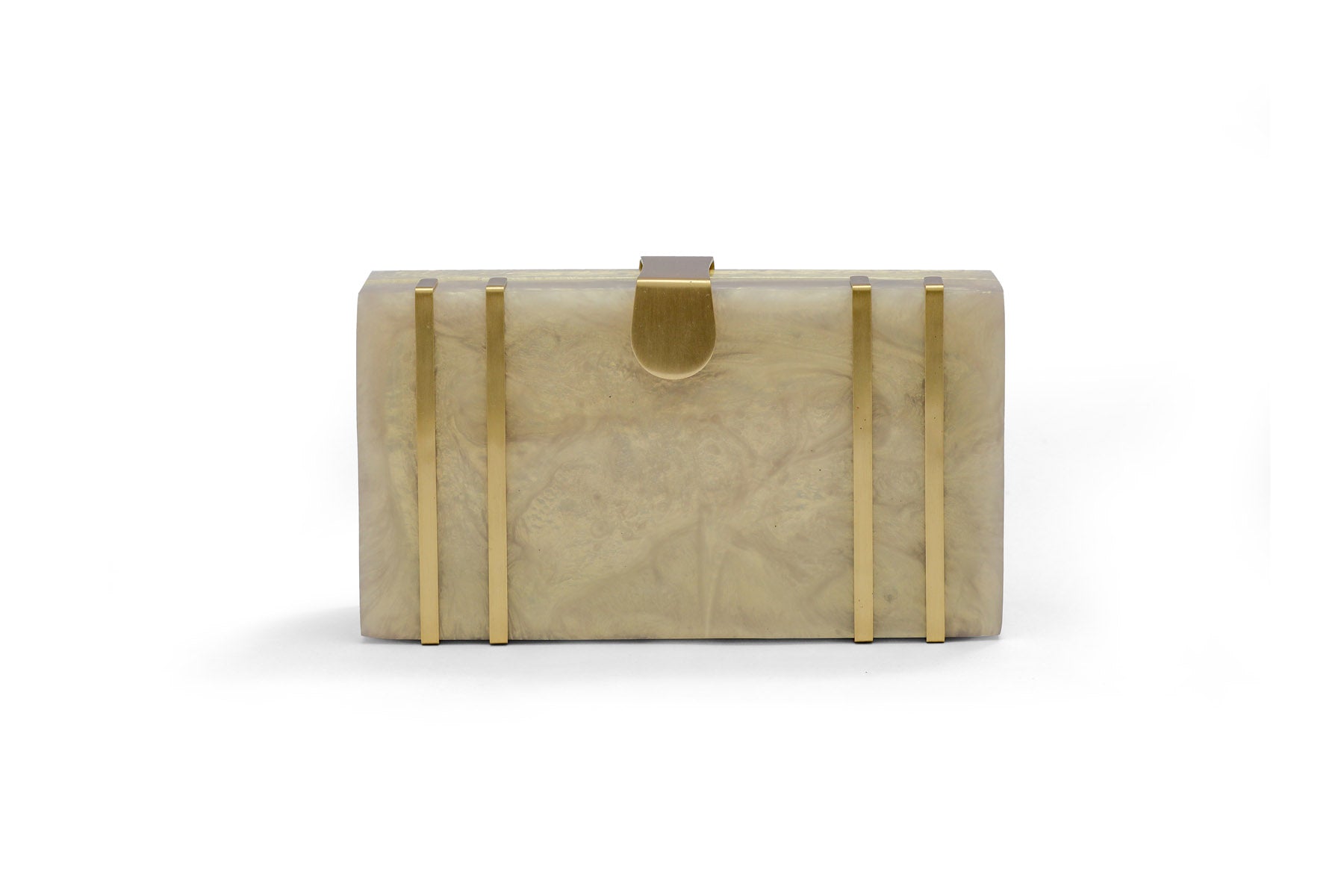 This exquisite rectangular resin clutch, featuring elegant brass strips and a sophisticated brass flap latch, is a testament to refined style and sophistication. Perfectly complementing your summer wedding dress, this masterpiece is a showstopping accessory for your special day. But its beauty and elegance don't stop there - it also makes a thoughtful and luxurious gift for your loved ones and girlfriends, perfect for birthdays, anniversaries, or any occasion that deserves a touch of glamour. Whether you're the bride or a beloved friend, this clutch is sure to impress and be treasured for years to comez.