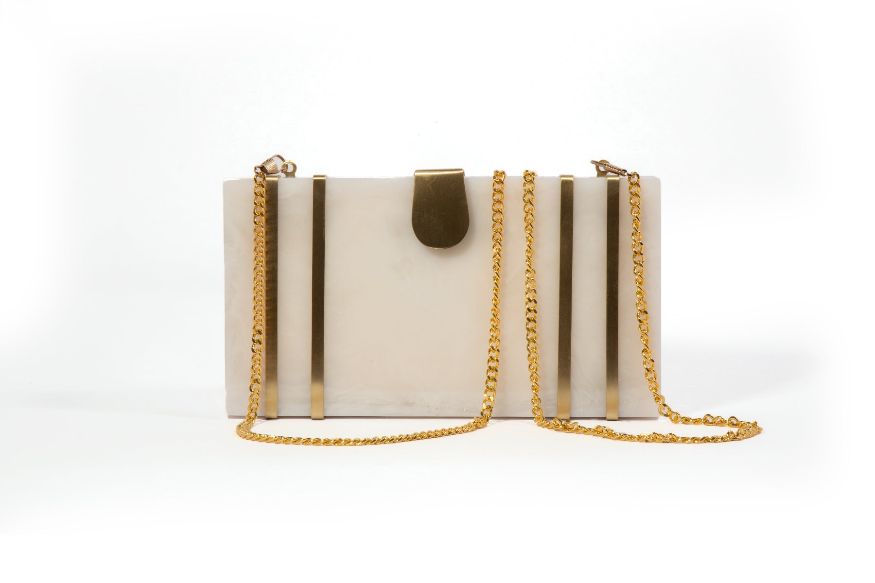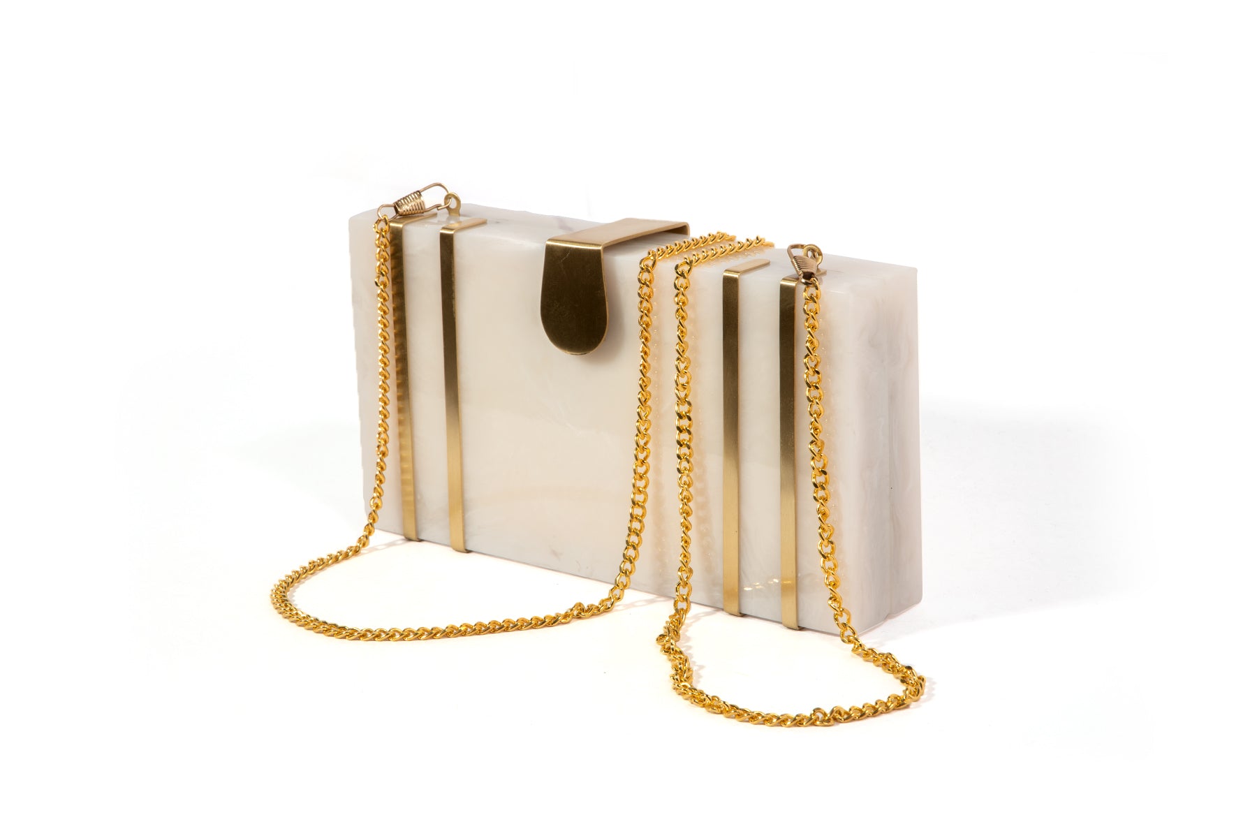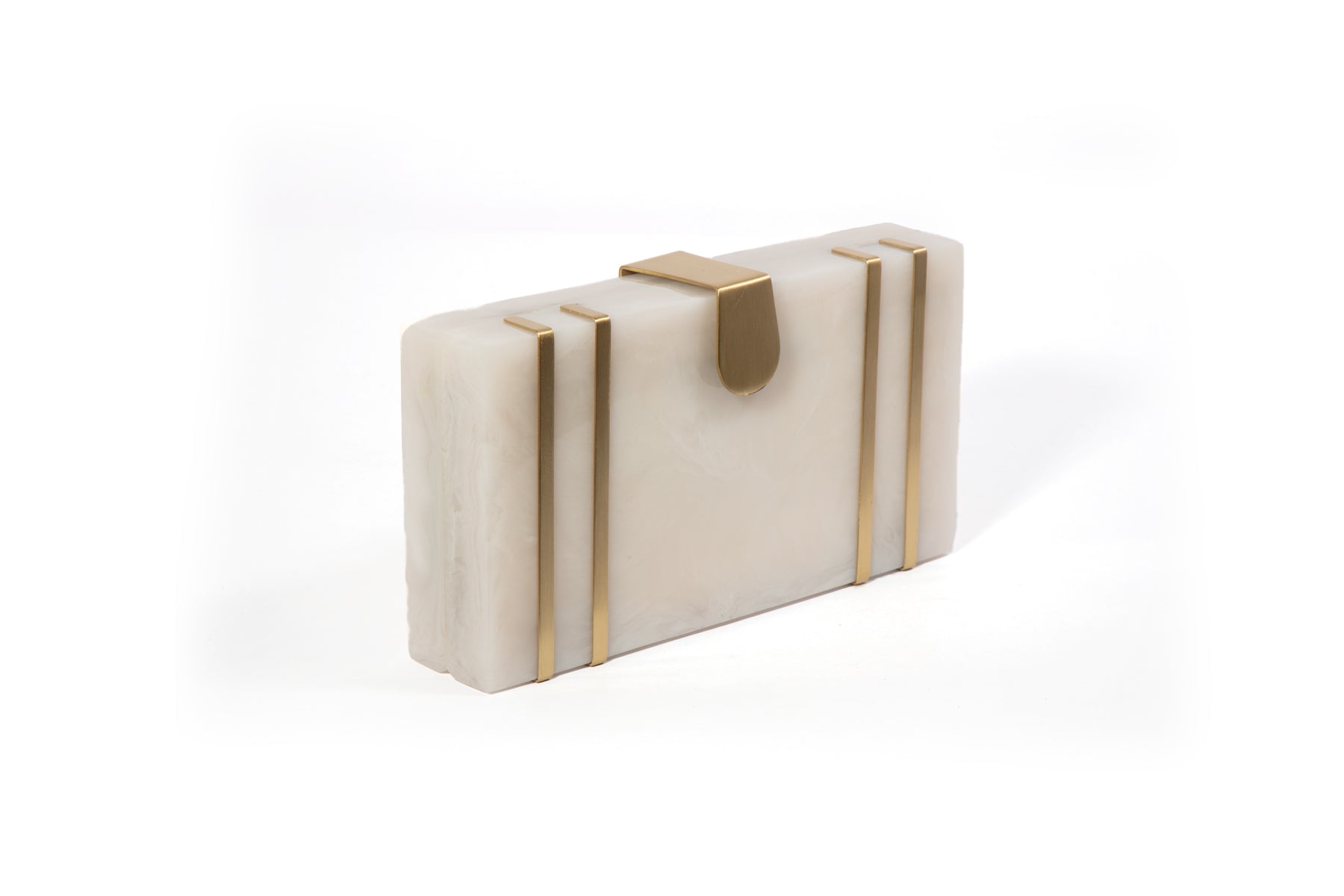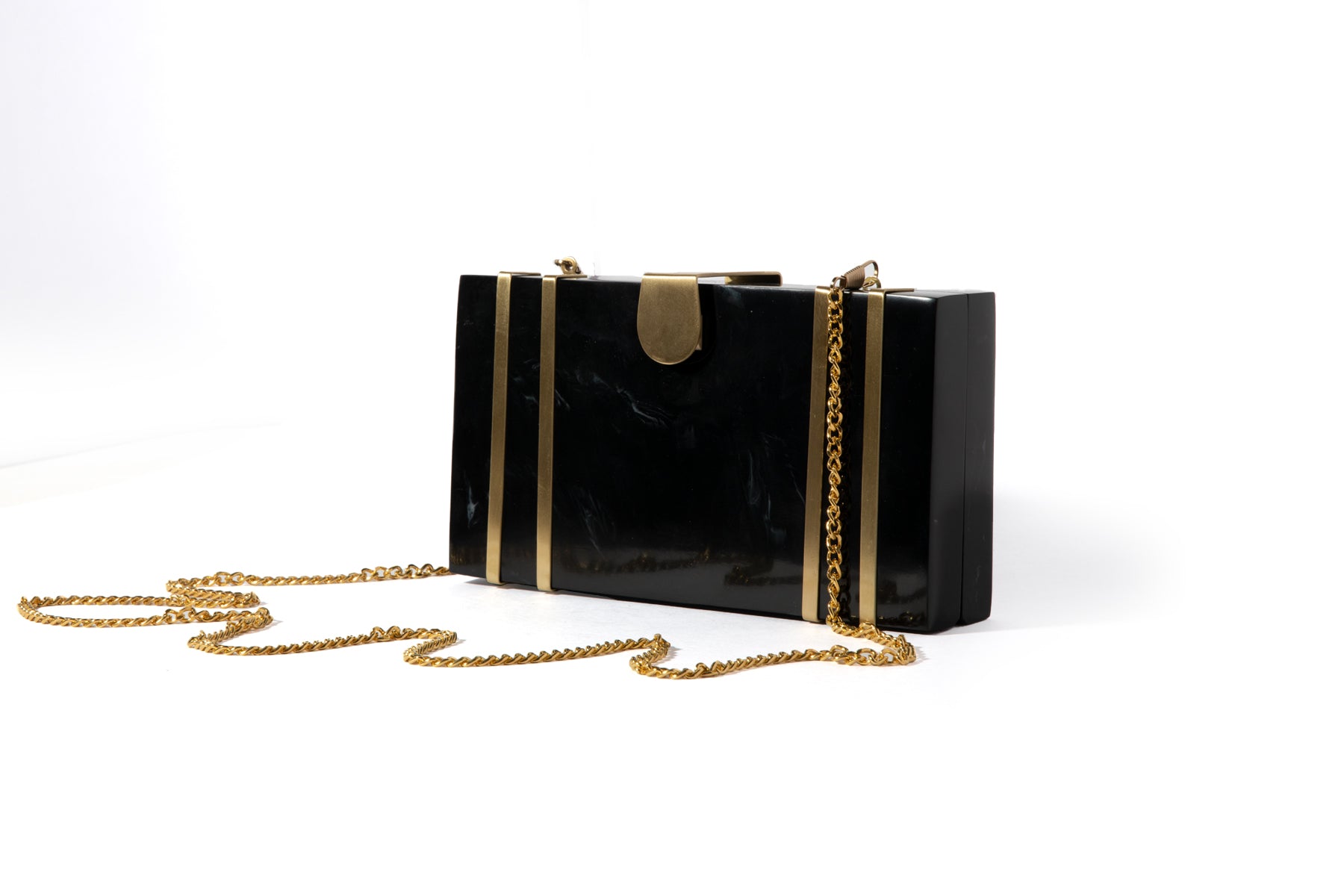 This exquisite rectangular resin clutch, featuring elegant brass strips and a sophisticated brass flap latch, is a testament to refined style and sophistication. Perfectly complementing your summer wedding dress, this masterpiece is a showstopping accessory for your special day. But its beauty and elegance don't stop there - it also makes a thoughtful and luxurious gift for your loved ones and girlfriends, perfect for birthdays, anniversaries, or any occasion that deserves a touch of glamour. Whether you're the bride or a beloved friend, this clutch is sure to impress and be treasured for years to comez.